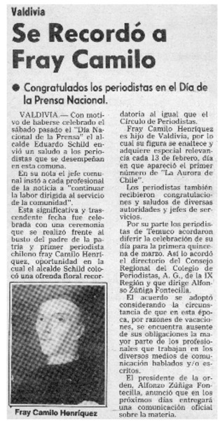 Se recordó a Fray Camilo. [artículo]