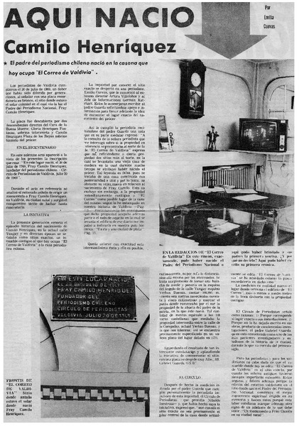 Aquí nació Camilo Henríquez [artículo] Emilia Cuevas.