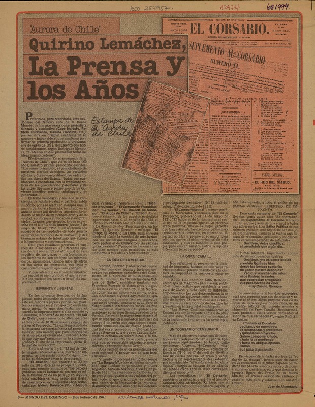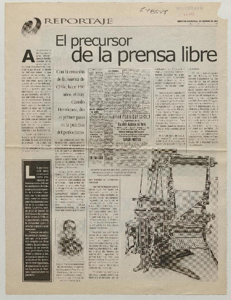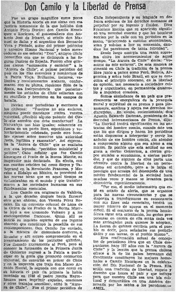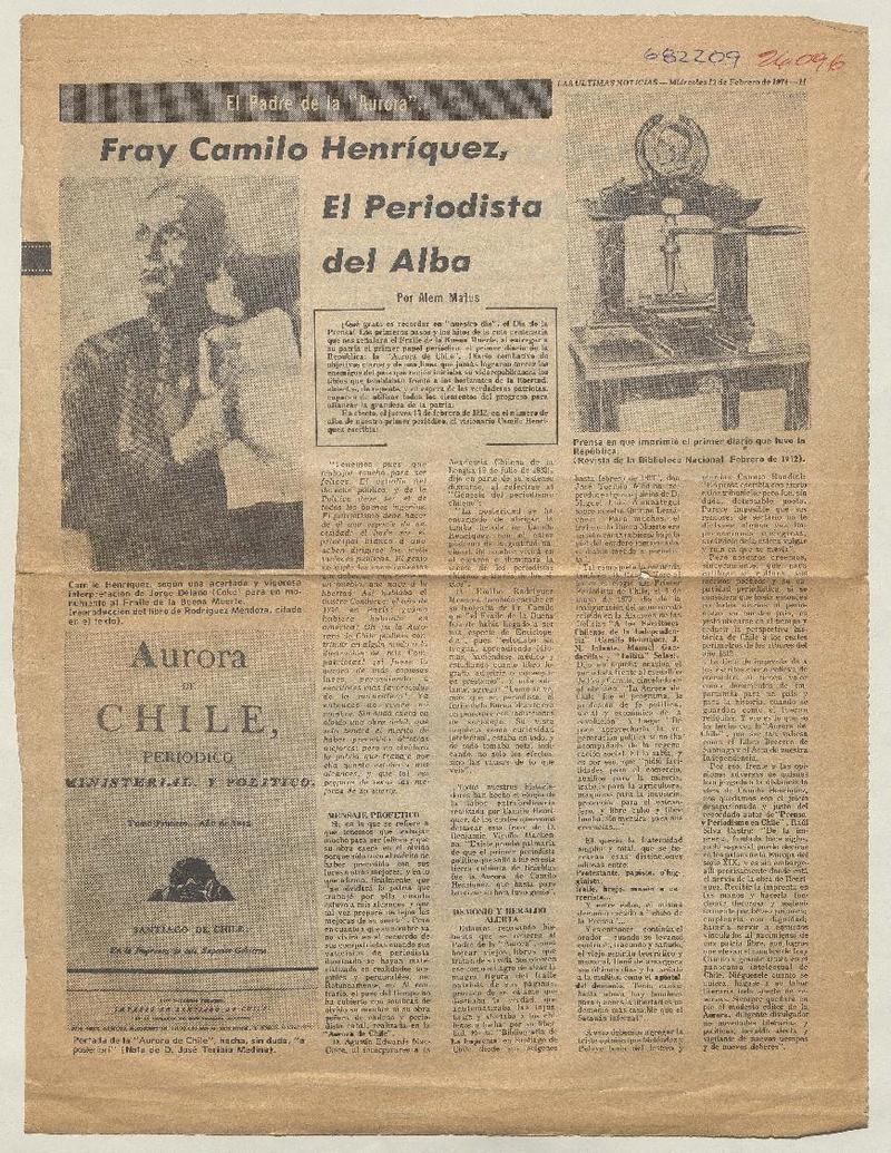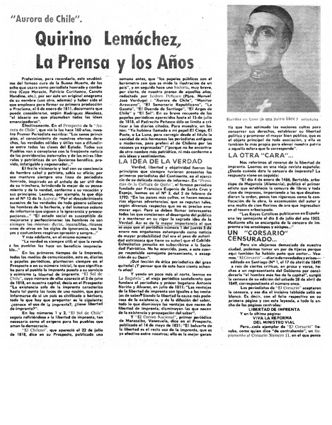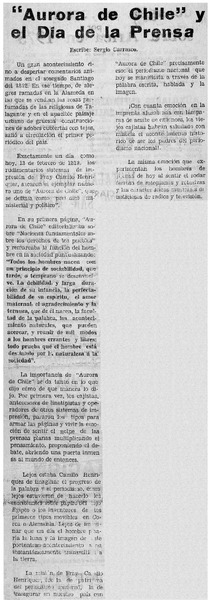 Aurora de Chile" y el día de la prensa [artículo] Sergio Carrasco.