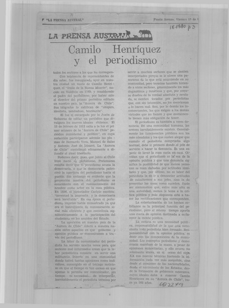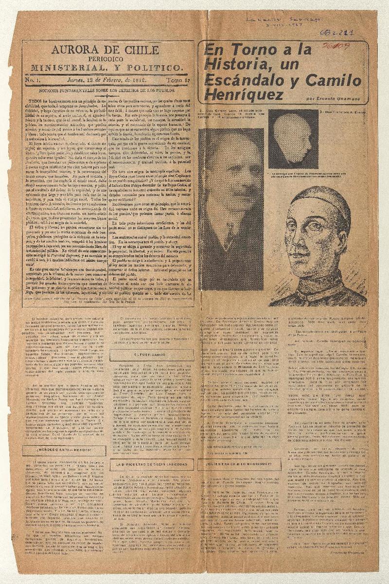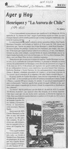 Henríquez y "La Aurora de Chile" [artículo] Jónico.