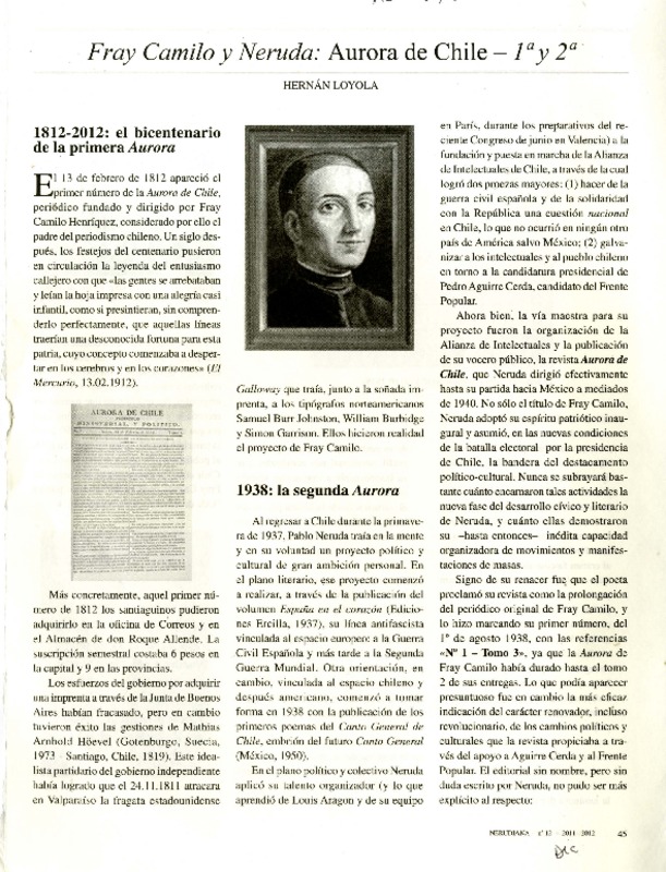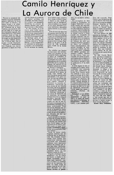 Algo sobre "La Aurora de Chile" y Fray Camilo [artículo] Renato Silva Valenzuela.