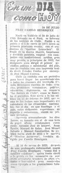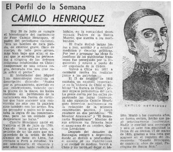 Camilo Henríquez (20 de julio de 1769) [artículo] Juan J. Rodríguez Contreras.