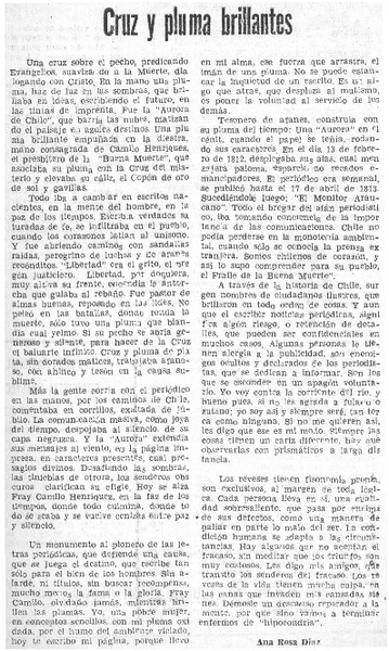 Cruz y pluma brillantes [artículo] Ana Rosa Díaz.