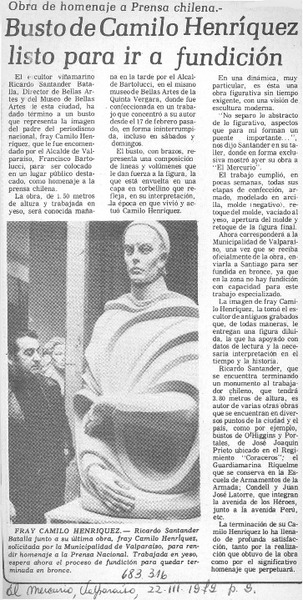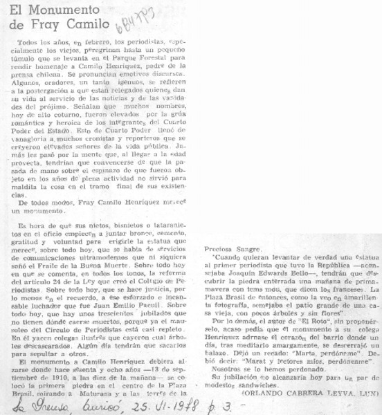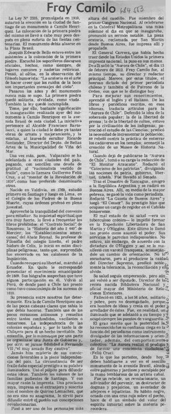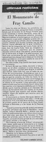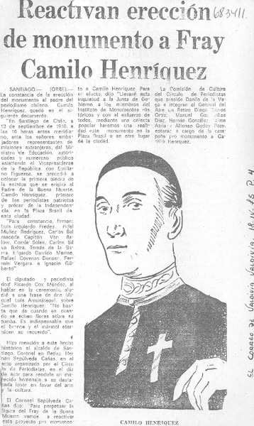 Reactivan erección de monumento a Fray Camilo Henríquez. [artículo]