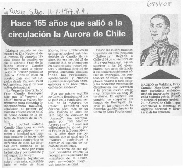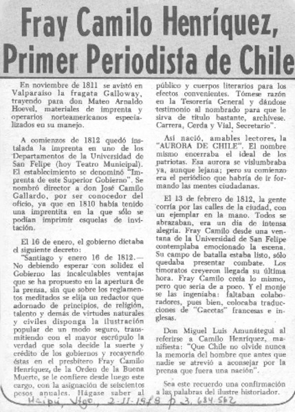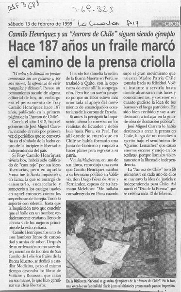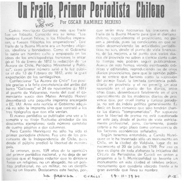 Un fraile, primer periodista chileno [artículo] Oscar Ramírez Merino.