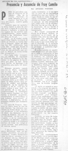 Presencia y ausencia de Fray Camilo [artículo] Angeles Fuentes.