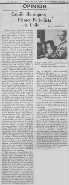 Camilo Henríquez, primer periodista de Chile [artículo] A. Ossandon C.