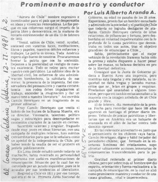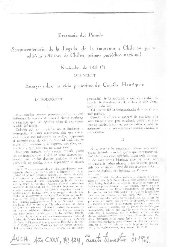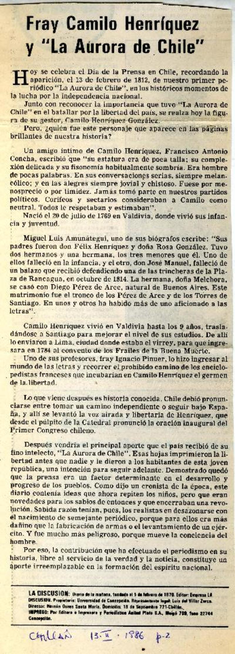 Camilo Henríquez y la "Aurora de Chile". [artículo]