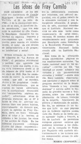 Las ideas de Fray Camilo [artículo] Mario Céspedes.