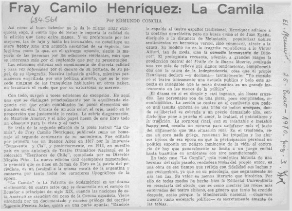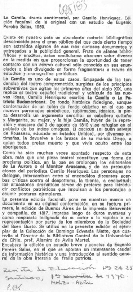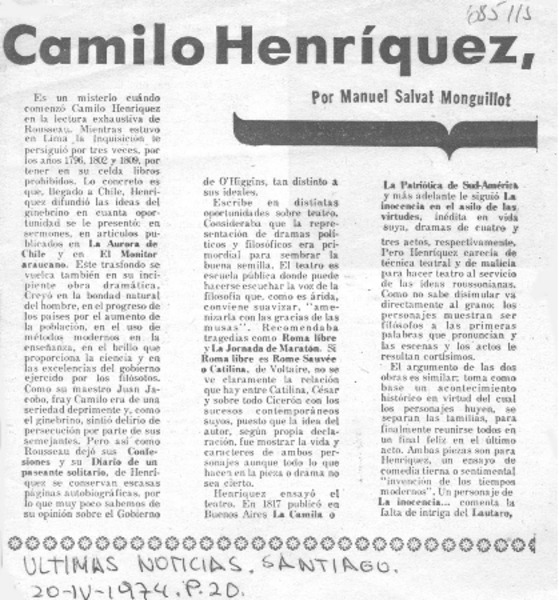 Camilo Henríquez, dramaturgo [artículo] Manuel Salvat Monguillot.