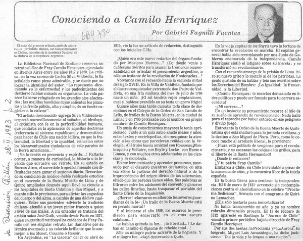 Conociendo a Camilo Henríquez [artículo] Gabriel Fagnilli Fuentes.