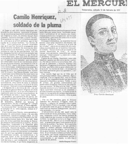 Camilo Henríquez, soldado de la pluma [artículo] Adolfo Simpson Trostel.