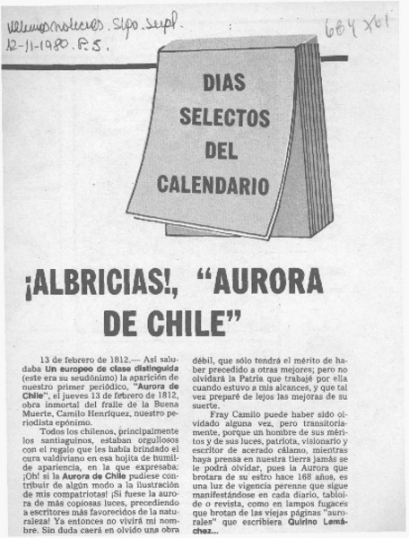 Albricias!, "Aurora de Chile". [artículo]