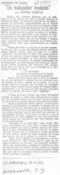 Un trabajador modesto" [artículo] Andrés Sabella.