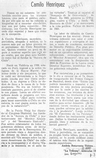 Camilo Henríquez [artículo] Andrés Benavente Urbina.