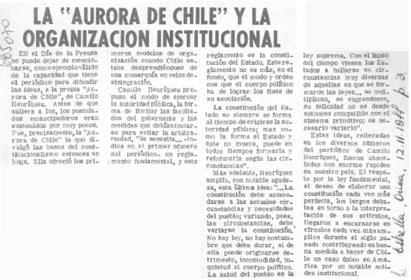La "Aurora de Chile" y la organización institucional. [artículo]