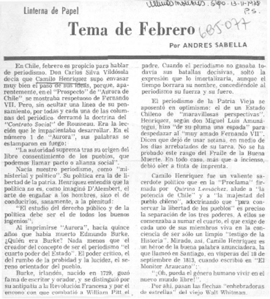 Tema de febrero [artículo] Andrés Sabella.