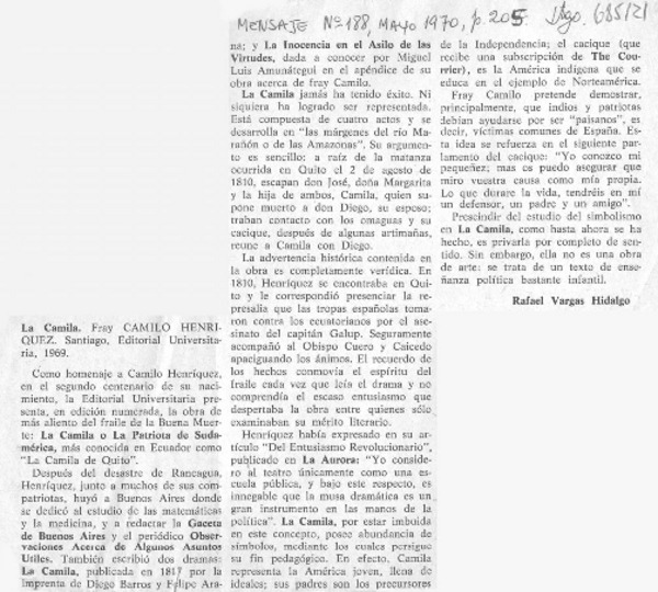 La Camila [artículo] Rafael Vargas Hidalgo.