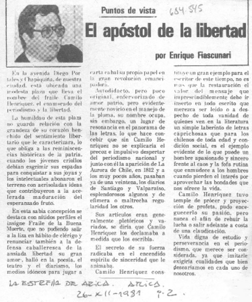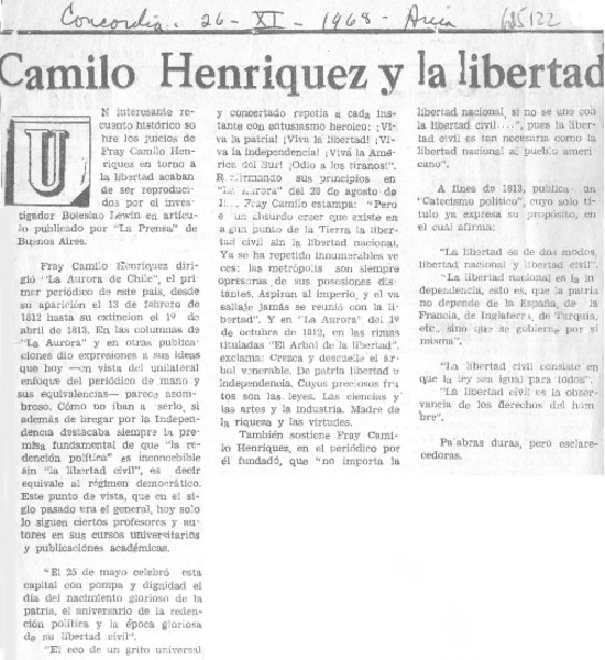 Camilo Henríquez y la libertad. [artículo]