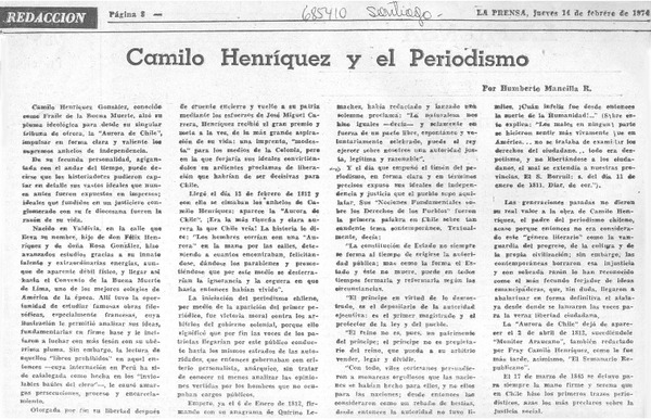 Camilo Henríquez y el periodismo [artículo] Humberto Mancilla R.