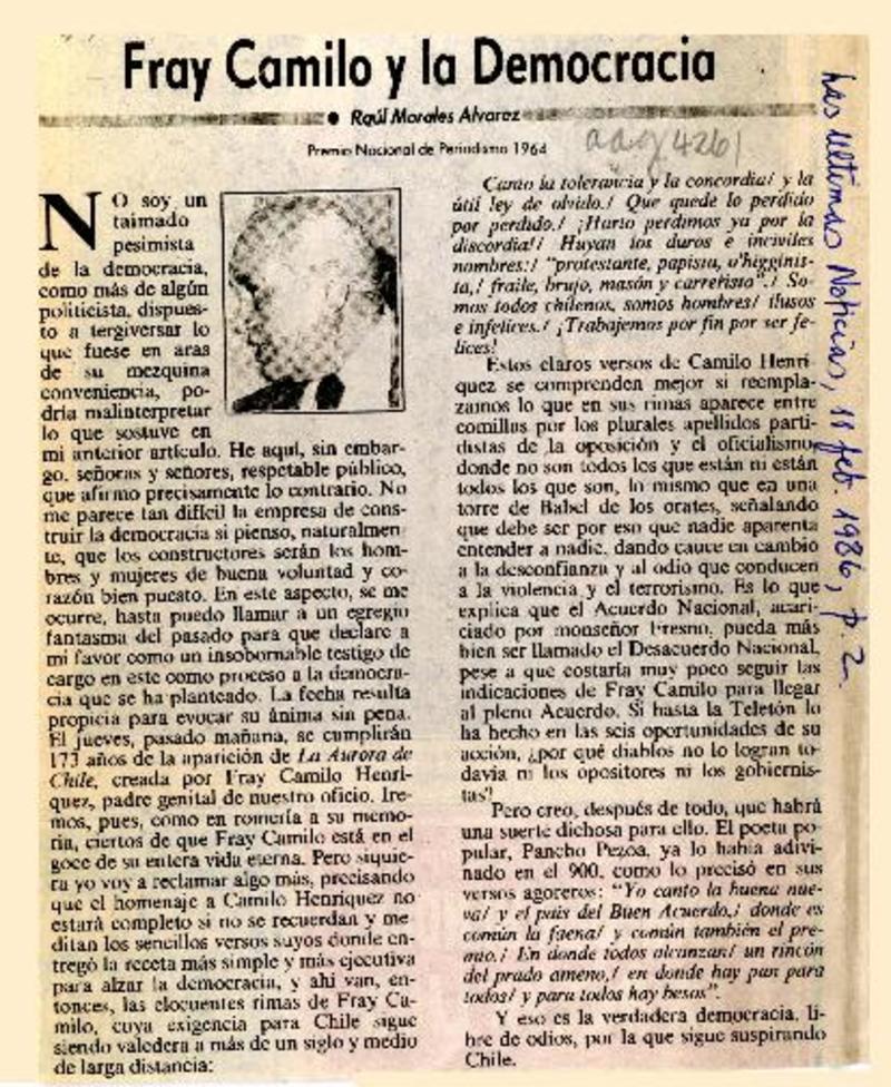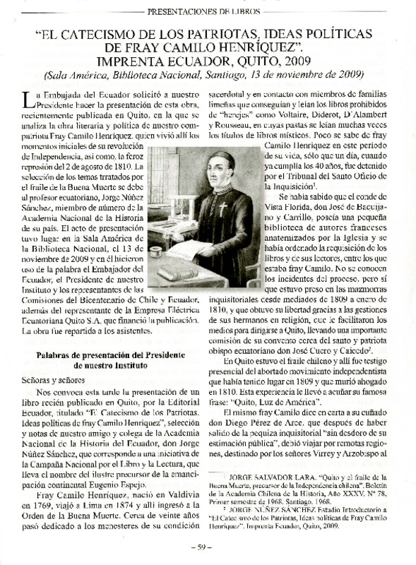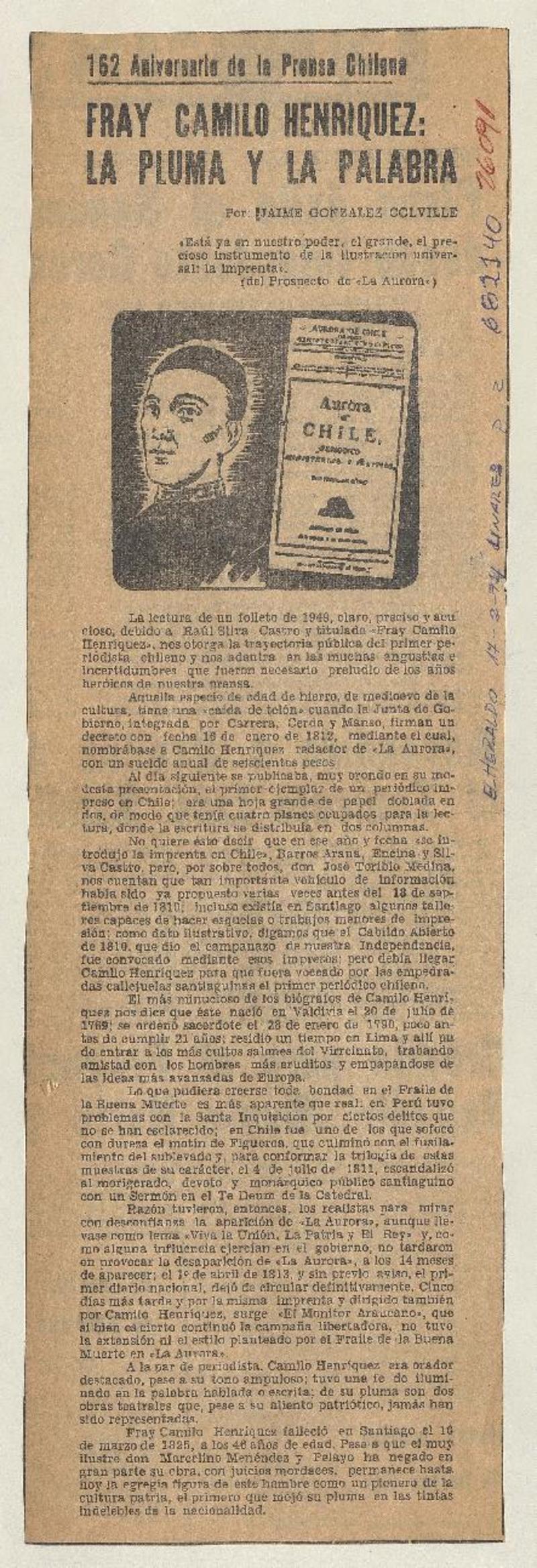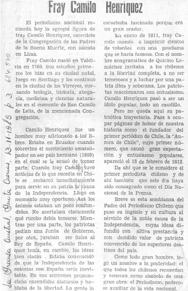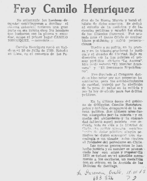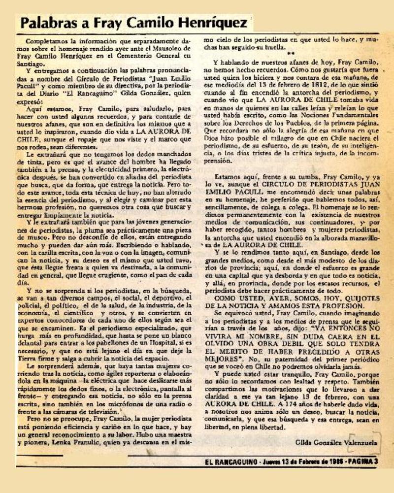 Palabras a Fray Camilo Henríquez [artículo] Gilda González Valenzuela.