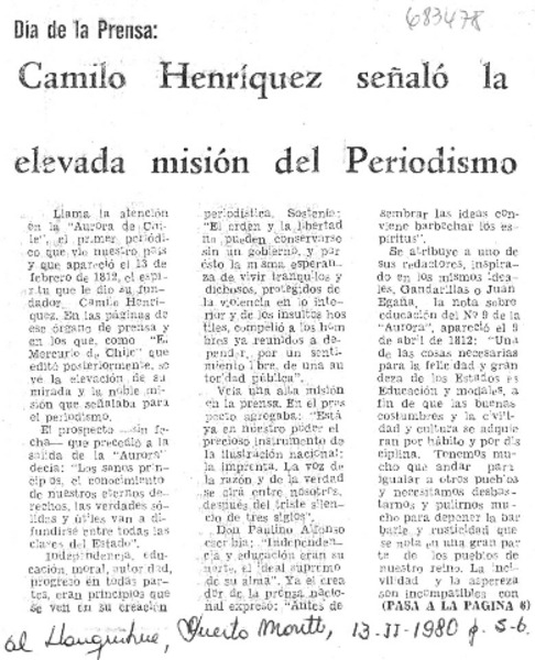Camilo Henríquez señaló la elevada misión del periodísmo. [artículo]
