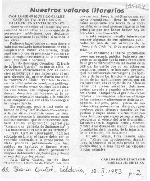 Camilo Henríquez. [artículo]