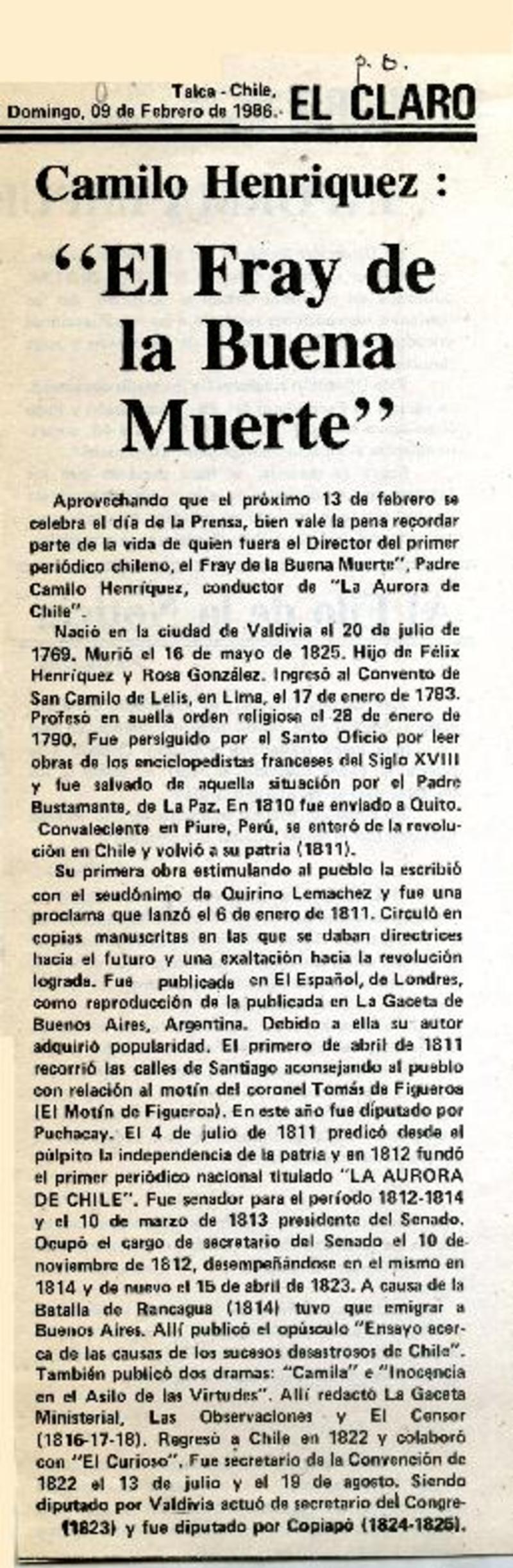 Camilo Henríquez, el Fraile de la buena muerte... [artículo]