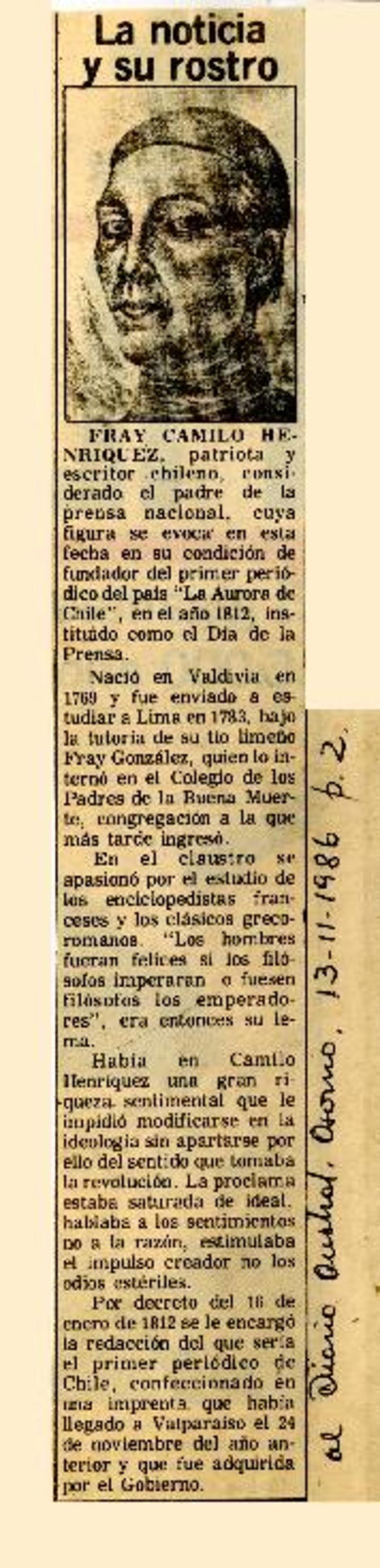 Nació Fray Camilo Henríquez [artículo] Agustín Contreras Duarte.