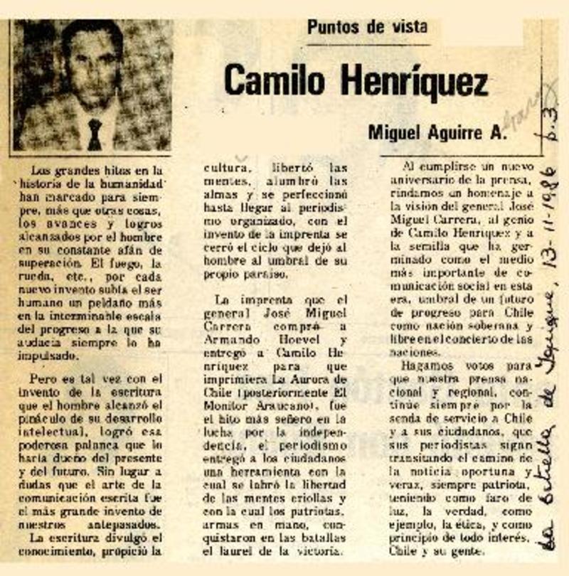 Camilo Henríquez [artículo] Miguel Aguirre A.