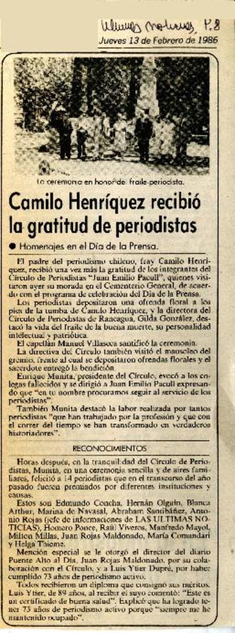 Camilo Henríquez recibió la gratitud de periodistas [artículo].