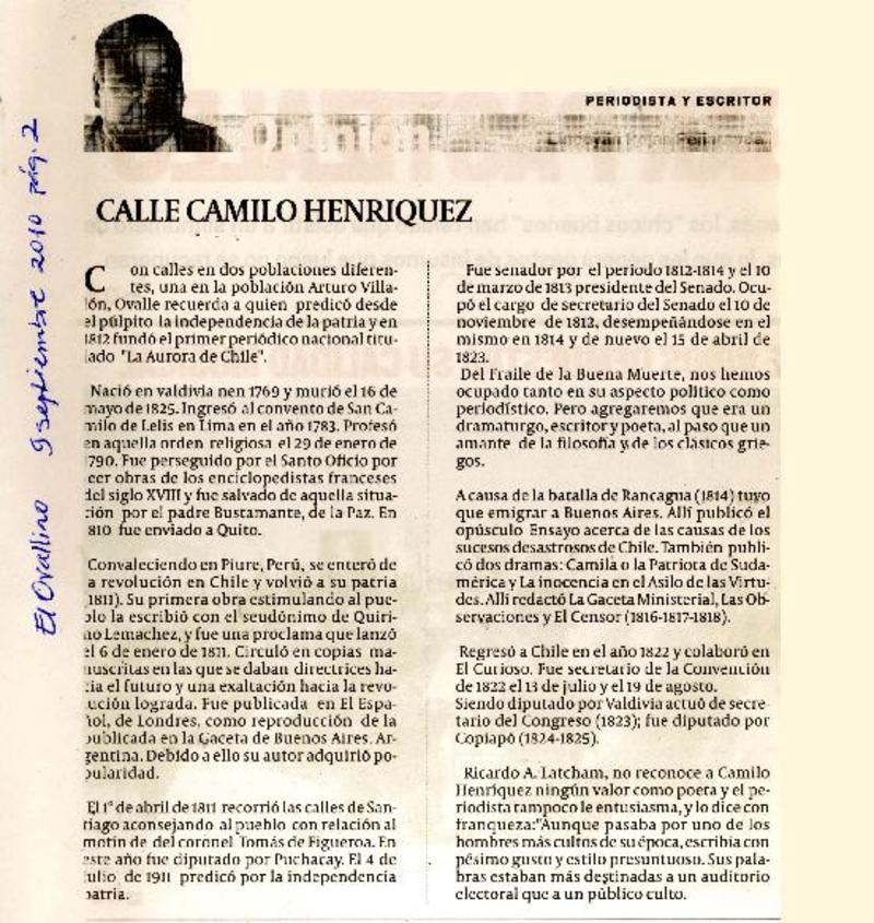 Las Calles de mi ciudad: Camilo Henríquez [artículo] Aniceto Ovando Ginés.