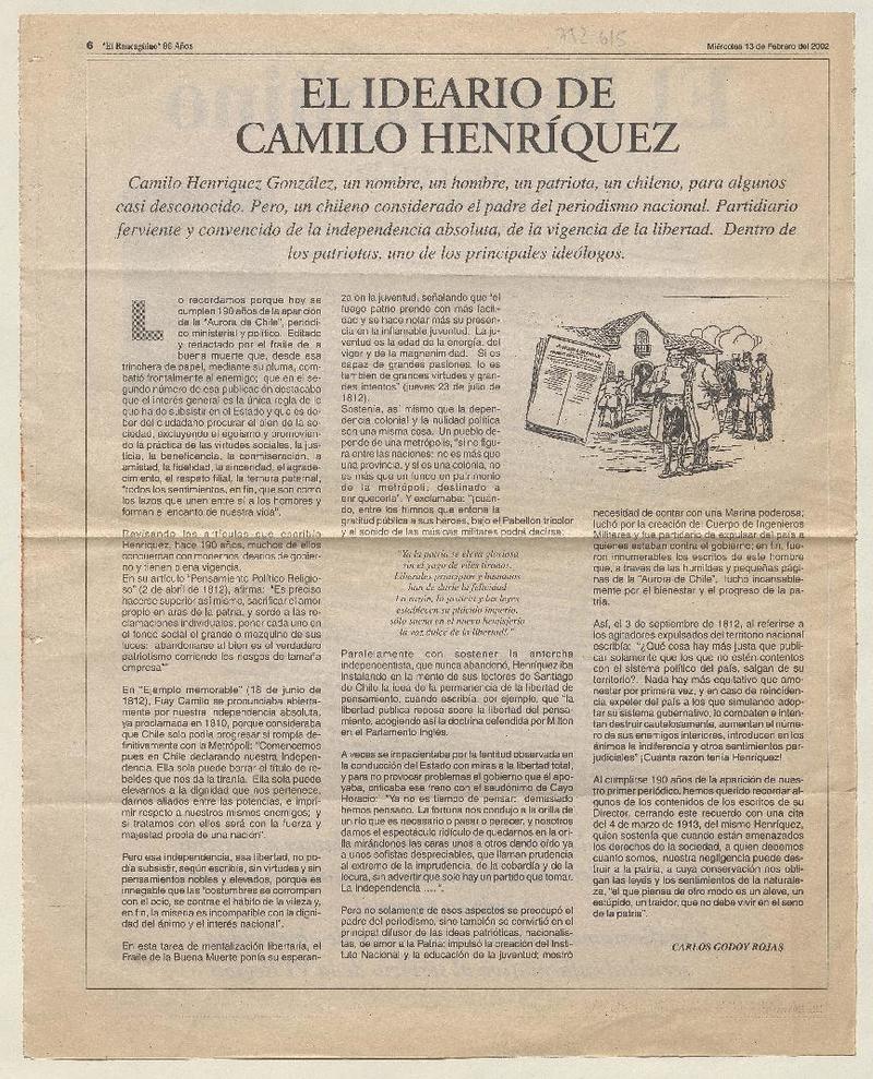 Ideario del prócer Camilo Henríquez [artículo] Angel Lázaro.