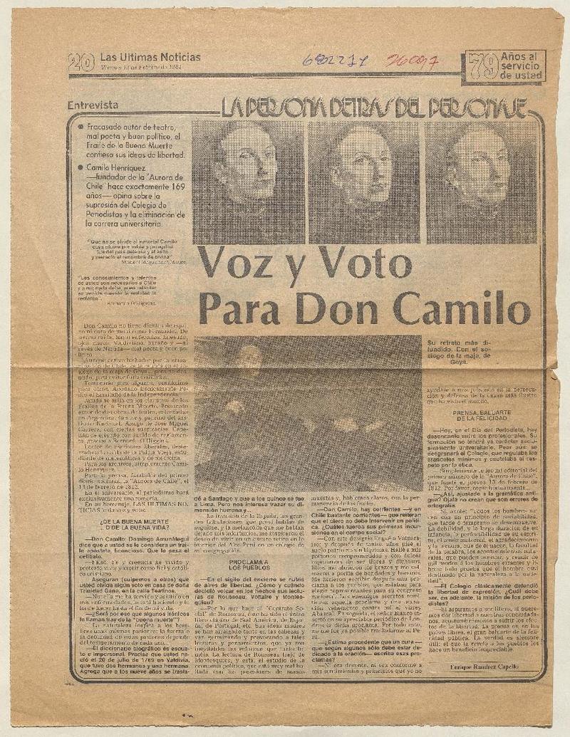 Voz y voto para don Camilo [artículo] Enrique Ramírez Capello.