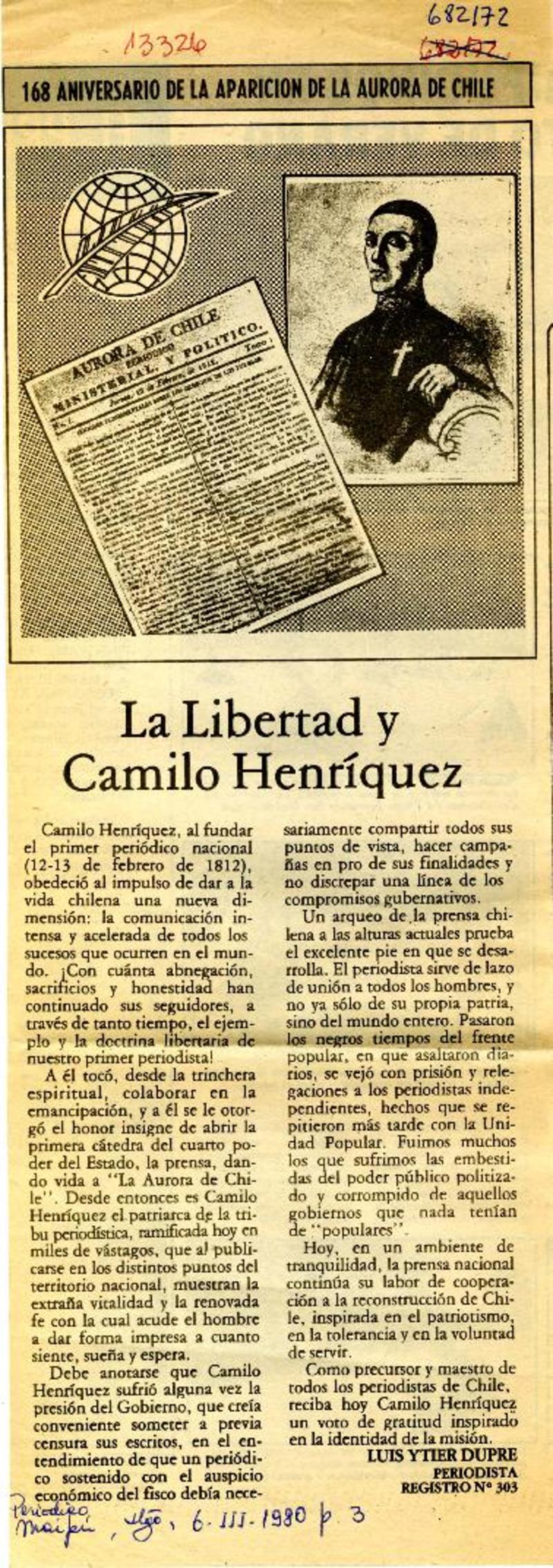 La Libertad y Camilo Henríquez [artículo] Luis Ytier Dupre.