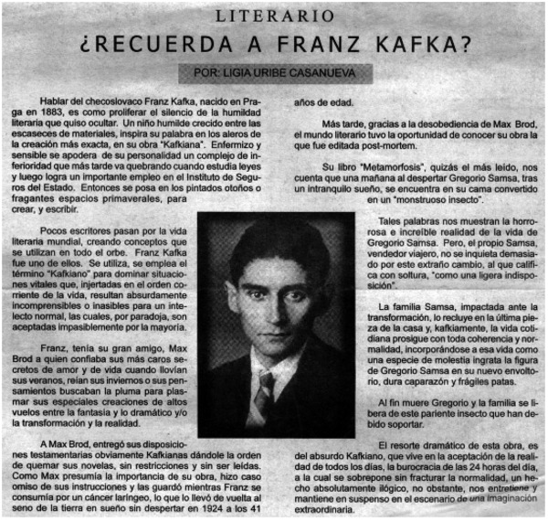 Recuerda a Franz Kafka? [artículo] Ligia Uribe Casanueva.