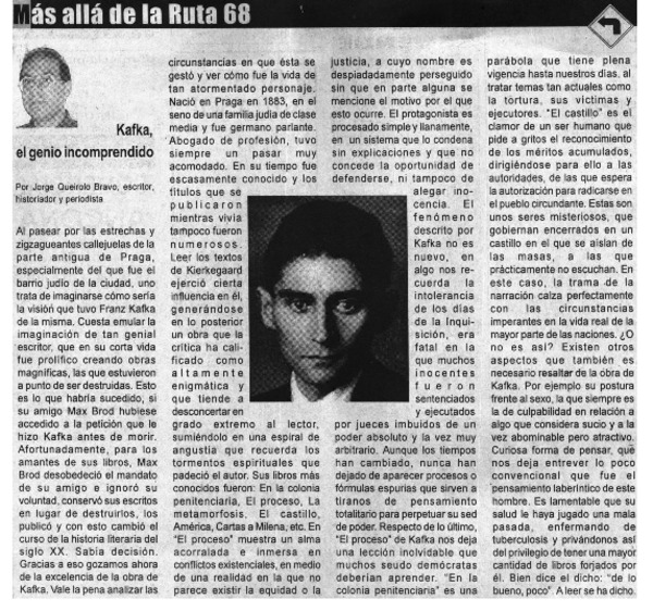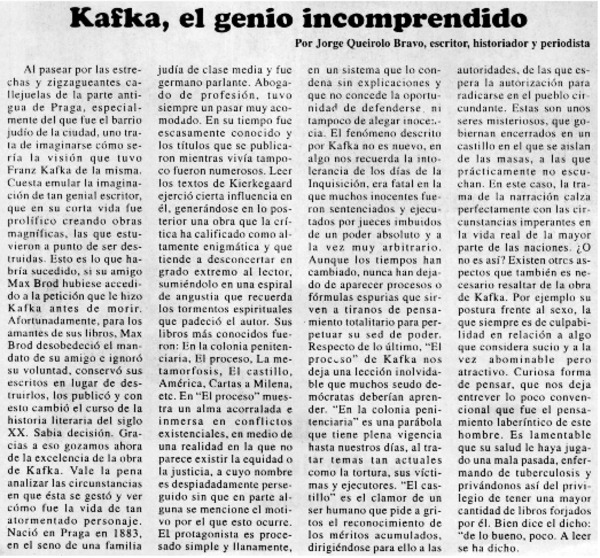 Kafka, el genio incomprendido [artículo] Jorge Queirolo Bravo.