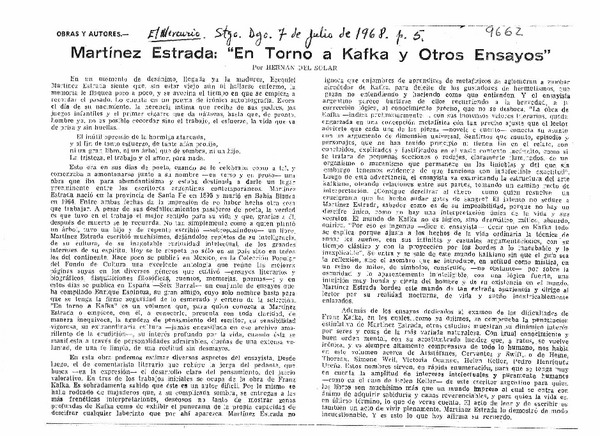 Martínez Estrada: "En torno a Kafka y otros ensayos" [artículo] Hernán del Solar.