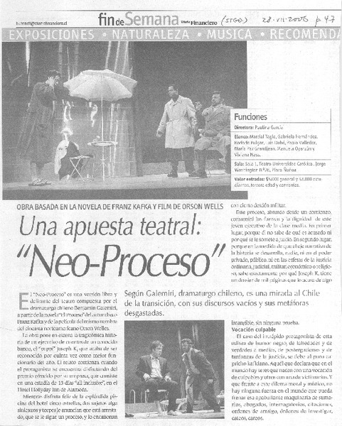 Una Apuesta teatral: "Neo-Proceso" [artículo]