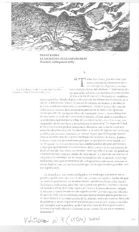 Franz Kafka, La Escritura de la experiencia [artículo] Elizabeth Collinwood-Selby.