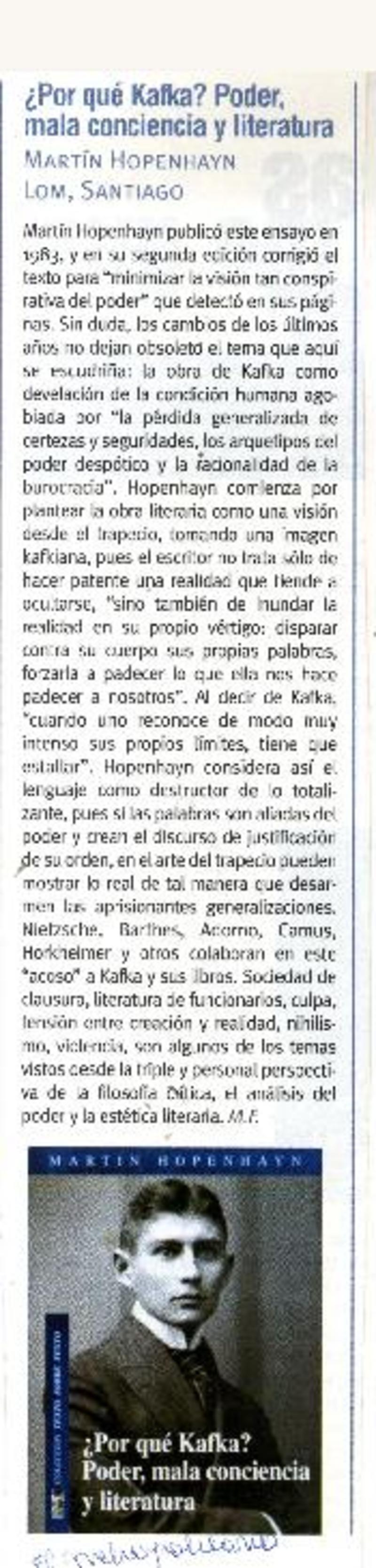 Autores chilenos - Hopenhayn, Martín - Kafka, Franz - Autores austríacos - ¿Por qué Kafka?