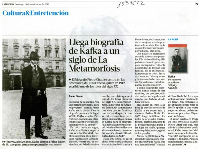 Llega biografía de Kafka a un siglo de La Metamorfosis [artículo]Javier García