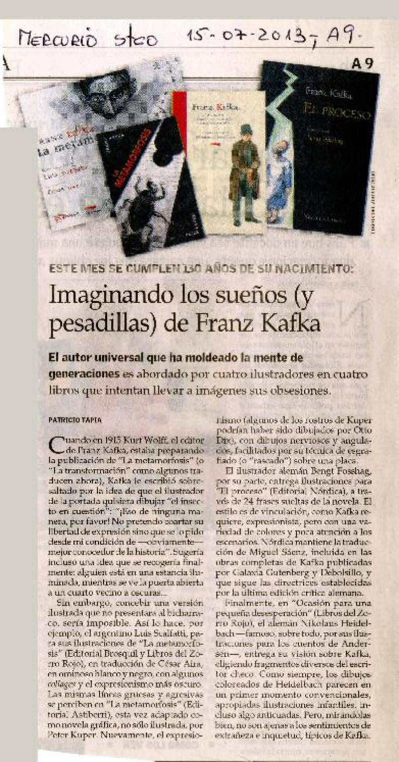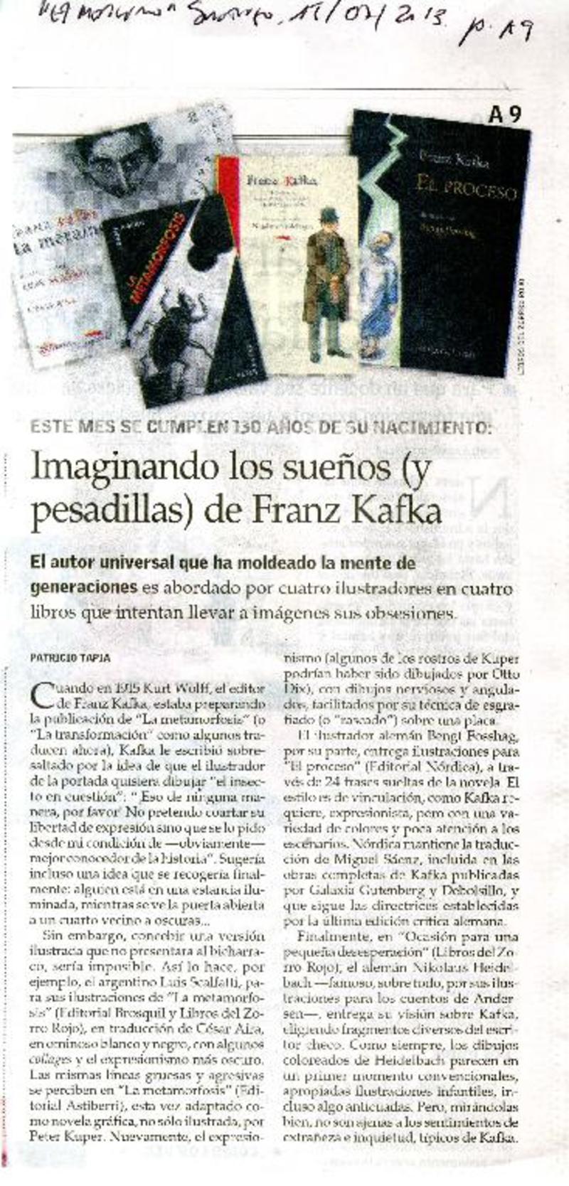 Este mes se cumplen 130 años de su nacimiento: Imaginando los sueños (y pesadillas) de Franz Kafka [artículo] Patricio Tapia