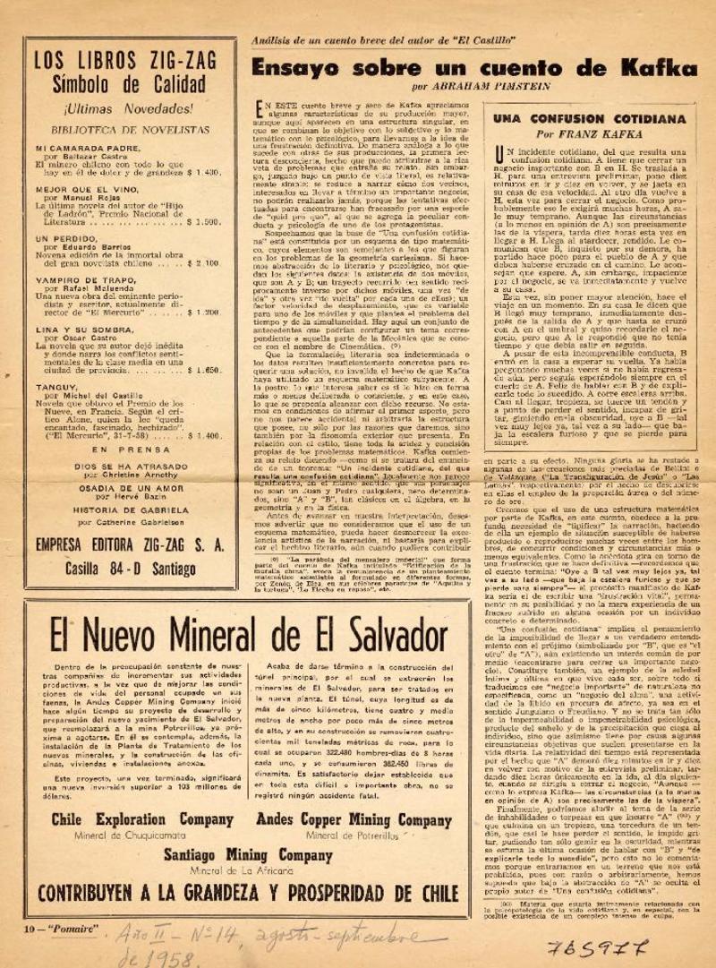 Ensayo sobre un cuento de Kafka [artículo] Abraham Pimstein.