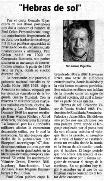 Hebras del sol [artículo] Ramón Riquelme.