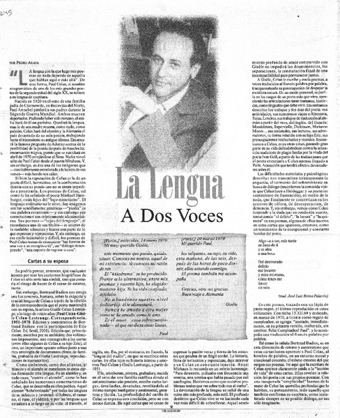 La lengua dos voces [artículo] Pedro Araya.