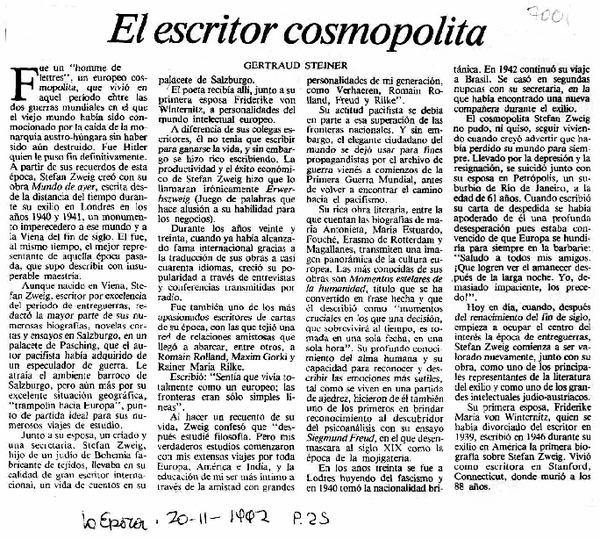El Escritor cosmopolita [artículo] Gertraud Steiner.