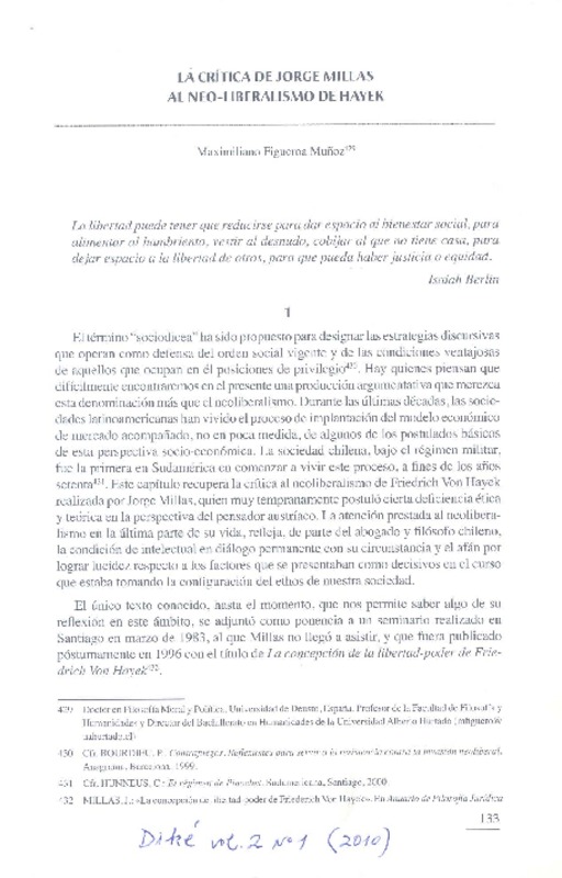Autores chilenos - Hayek, Friederich von - Autores austríacos - Millas, Jorge