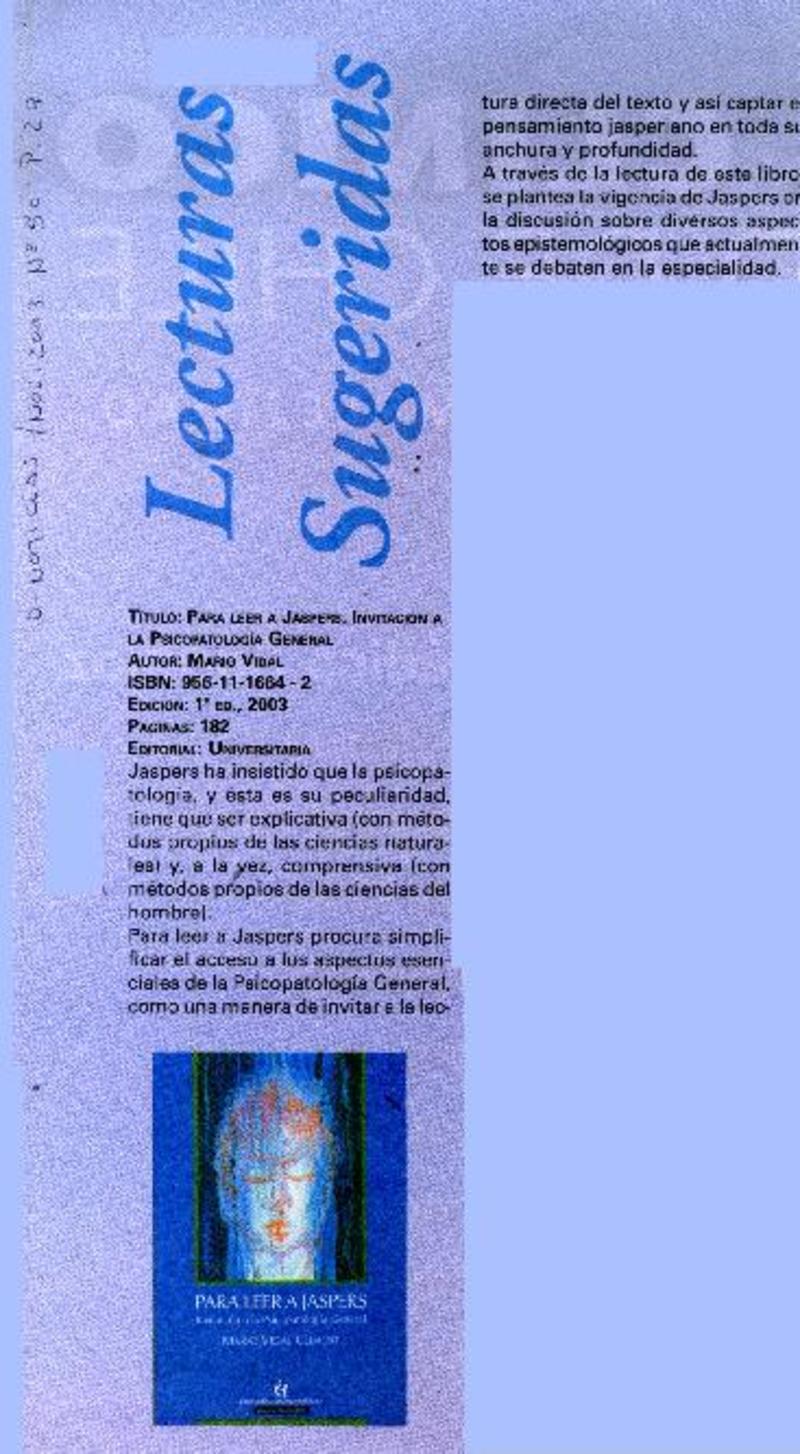 Autores chilenos - Autores austríacos - Vidal, Mario - Jaspers, Karl - Para leer a Jaspers
