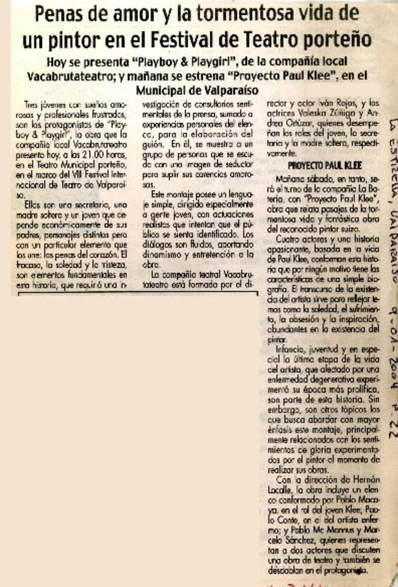 Autores chilenos - Autores austríacos - Lacalle, Hernán - Proyecto Paul Klee - Rojas, Iván - Play boy & play girl - Klee, Paul